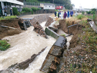 台風による大雨で、恩山寺谷川の護岸が崩落 (小松島市田野町8月2日)